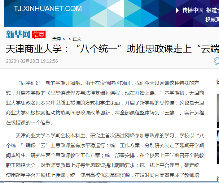新华网、《天津教育报》、津云报道我校思政课走上“云”端