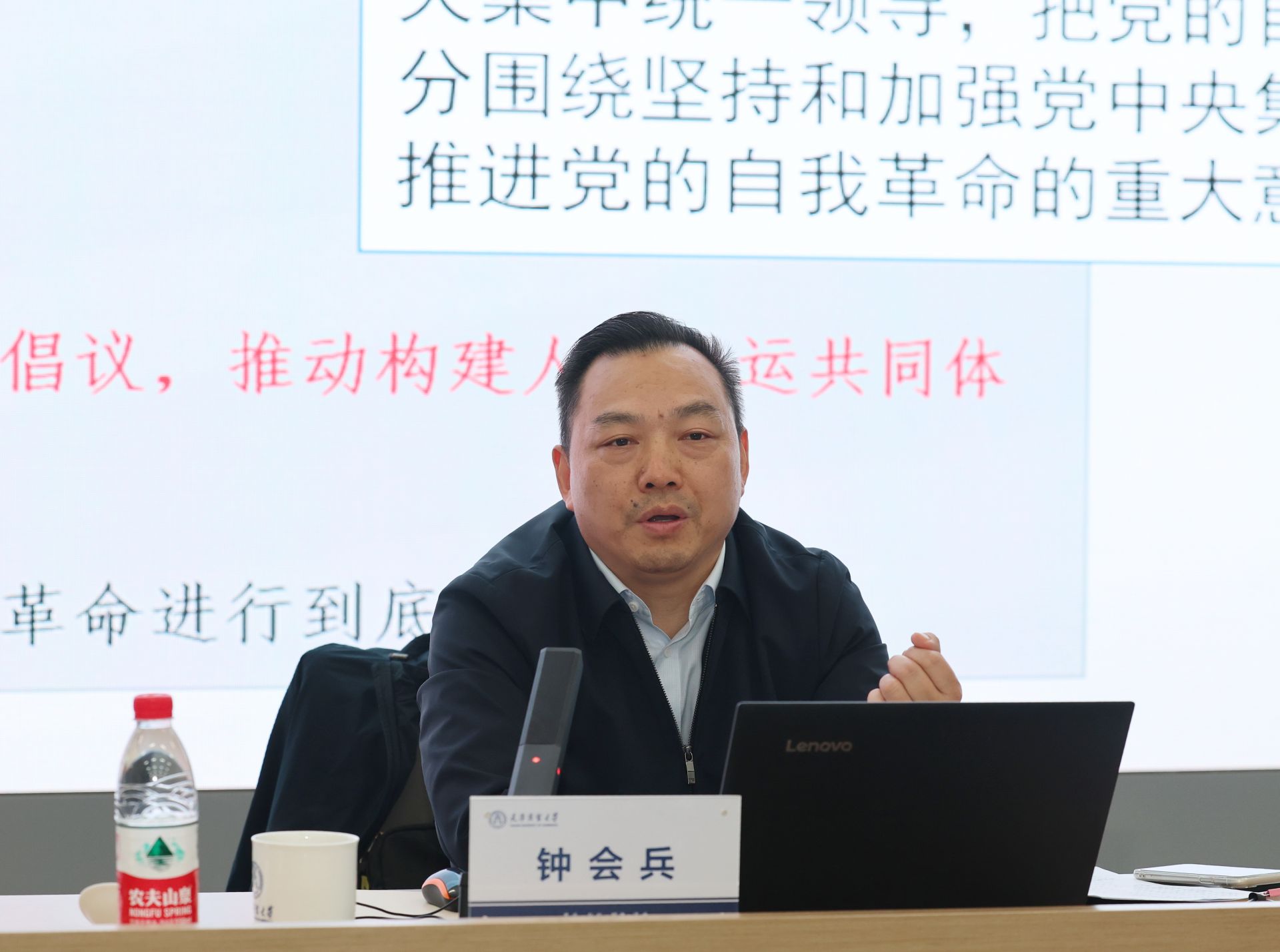钟会兵围绕“新征程实现民族复兴伟业的思想指南——深入学习《习近平谈治国理政》第五卷”主题,从深刻把握第五卷的丰富内容和内在逻辑、深刻把握第五卷的重大理论与实践创新、深刻把握学习贯彻第五卷的实践要求三个方面,对《习近平谈治国理政》第五卷作了系统讲解和深入阐述。他指出,《习近平谈治国理政》第五卷是全面系统反映习近平新时代中国特色社会主义思想最新成果的权威著作。要坚持理论联系实际的马克思主义学风,更好用习近平新时代中国特色社会主义思想统一思想、统一意志、统一行动,凝聚起以中国式现代化全面推进强国建设、民族复兴伟业的磅礴力量。